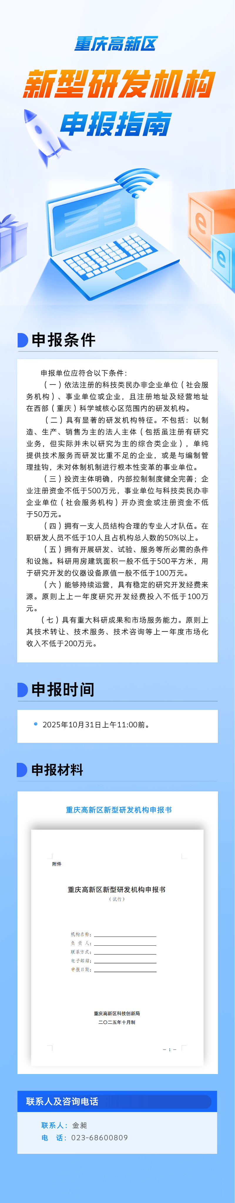 申报文件:重庆高新区科技创新局关于组织开展重庆高新区新型研发机构申报工作的通知