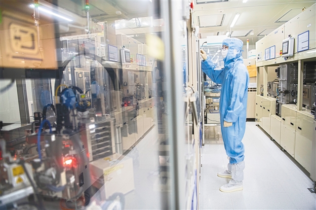 7月21日,重庆高新区,台晶(重庆)电子有限公司生产车间,工作人员正在监管生产设备。重庆日报记者 谢智强 摄