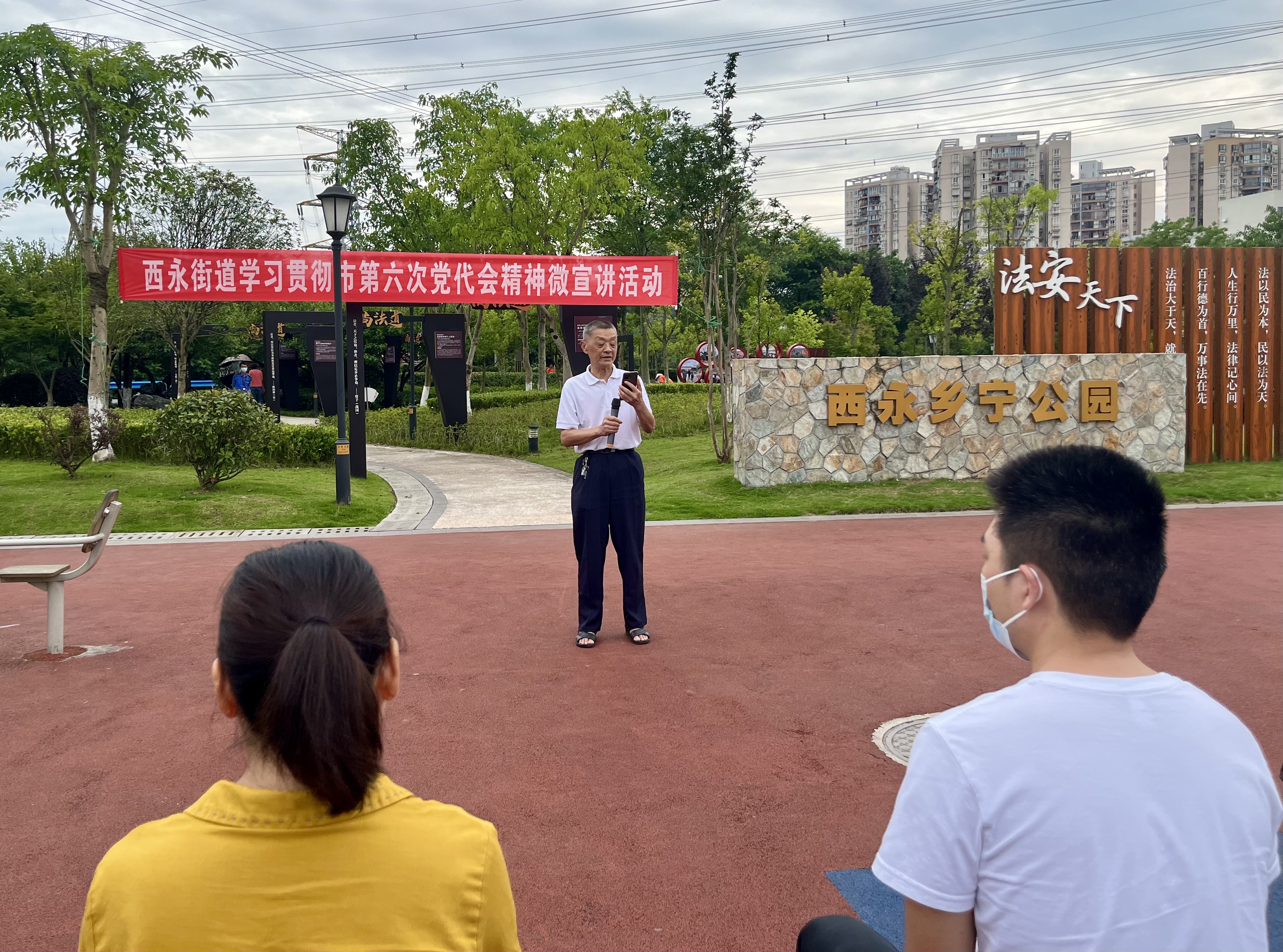 “竹板一打乐呵呵,父老乡亲听我说;重庆六次党代会,全会精神要领会;这次会议不一般,重大意义记史册。”“五年成就硕果累,各项事业上台阶;打赢脱贫攻坚战,小康社会如期成。”6月16日下午,西永街道学习贯彻市第六次党代会精神微宣讲在法治公园举行,街道机关、各村(社区)100余名党员群众代表参加了宣讲会。