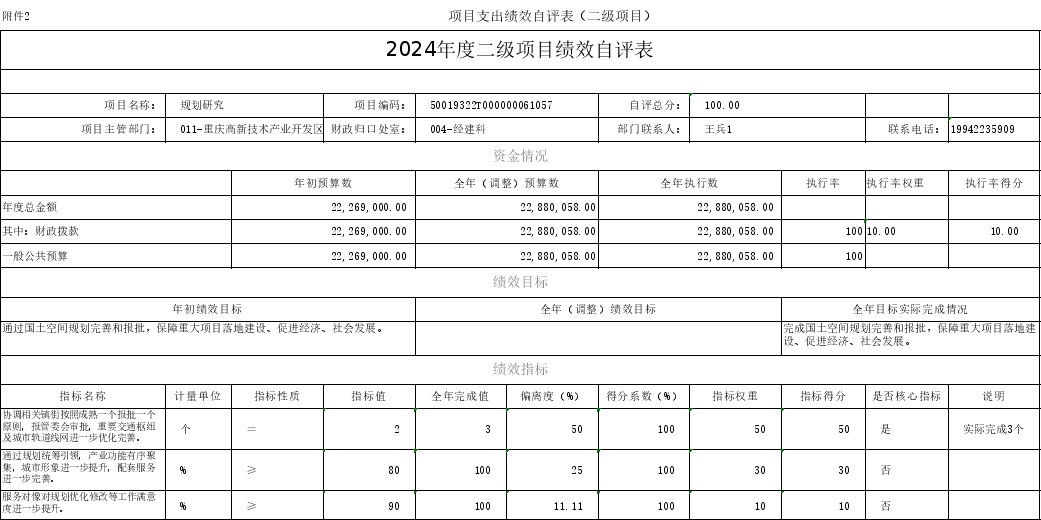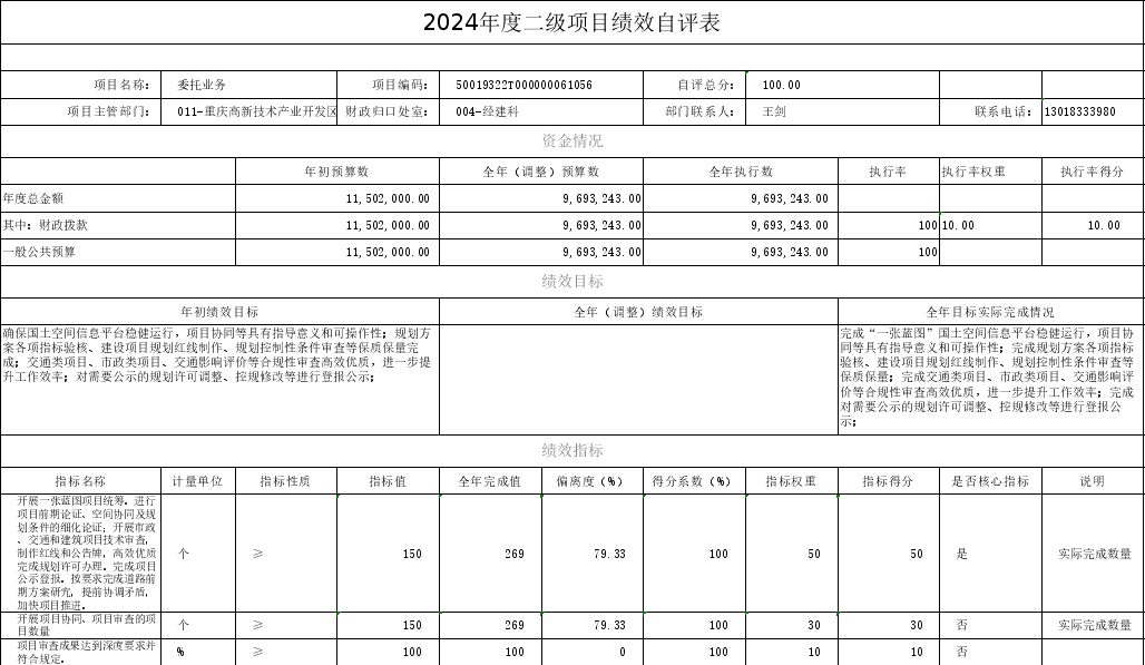 重庆高新技术产业开发区管理委员会规划和自然资源局2024年度部门决算公开说明及公开报表