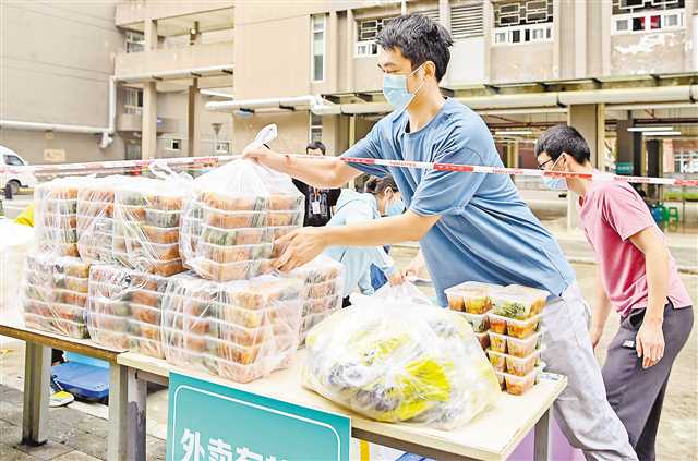 “送快递是最恼火的。”何瑞坦言,“房客”们每天的包裹会放在隔离点的大门口,消杀后由专人统一转运到宿舍楼前的指定点,然后他们一一核对信息,把同一层楼的包裹分拣到一堆,再送到各个房间门口。